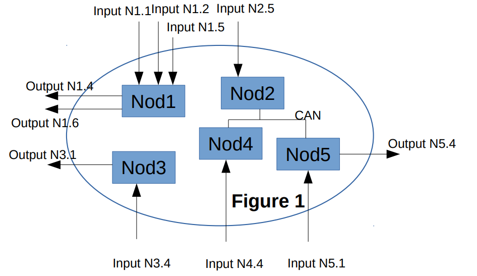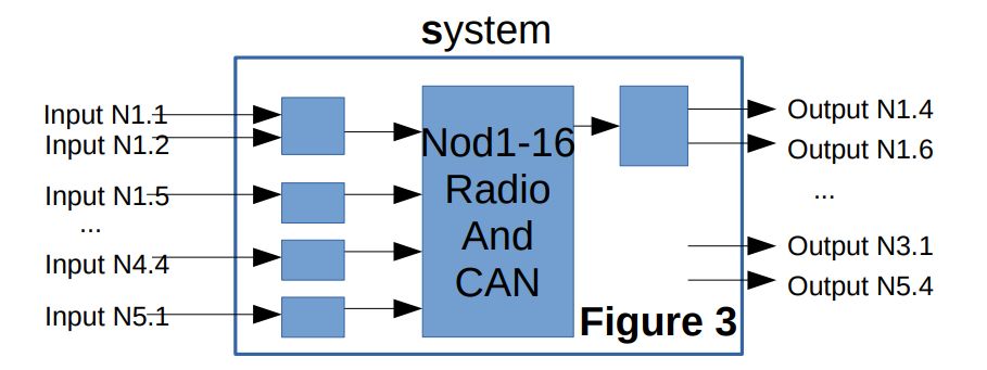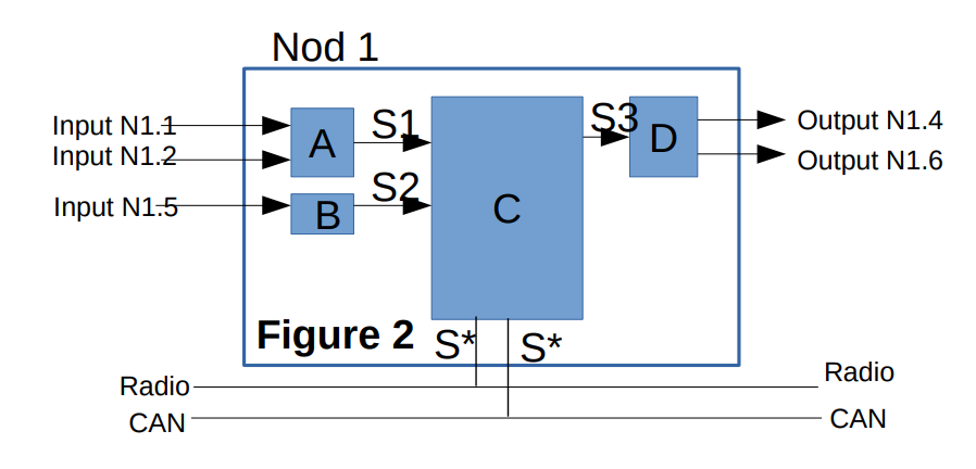 In Figure 2, a specific node is analyzed. From the node perspective, there can be both electrical inputs, and communication via radio and CAN and CAN can both be inputs and outputs.